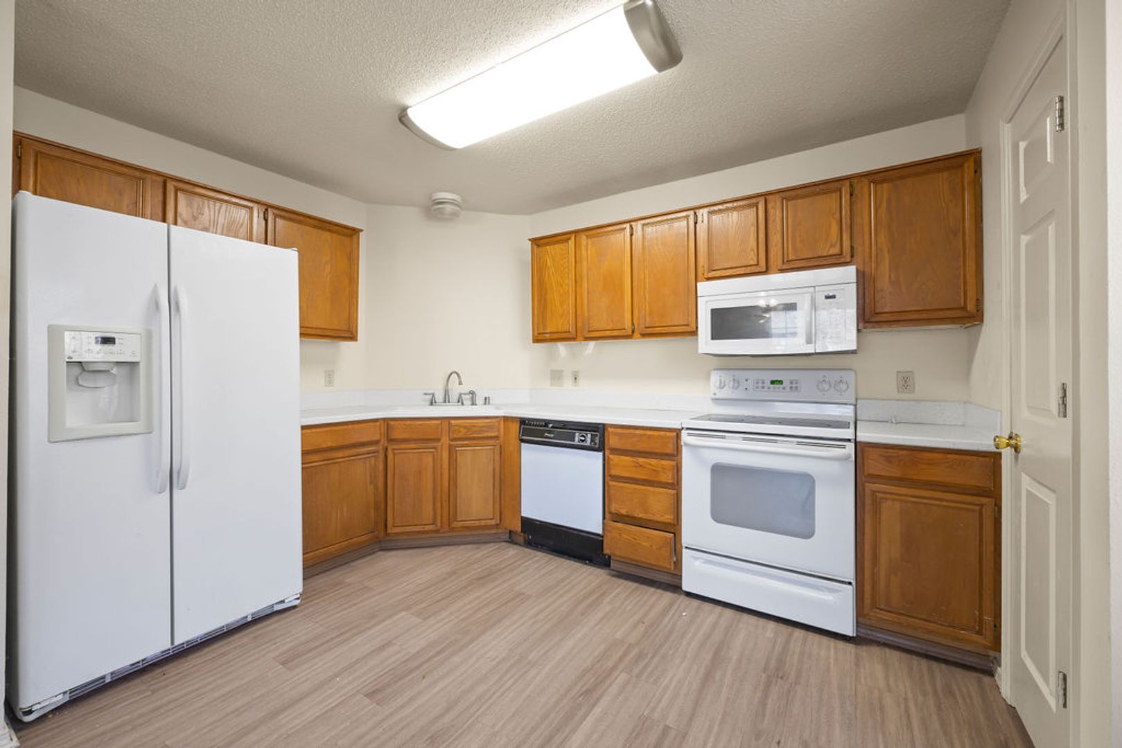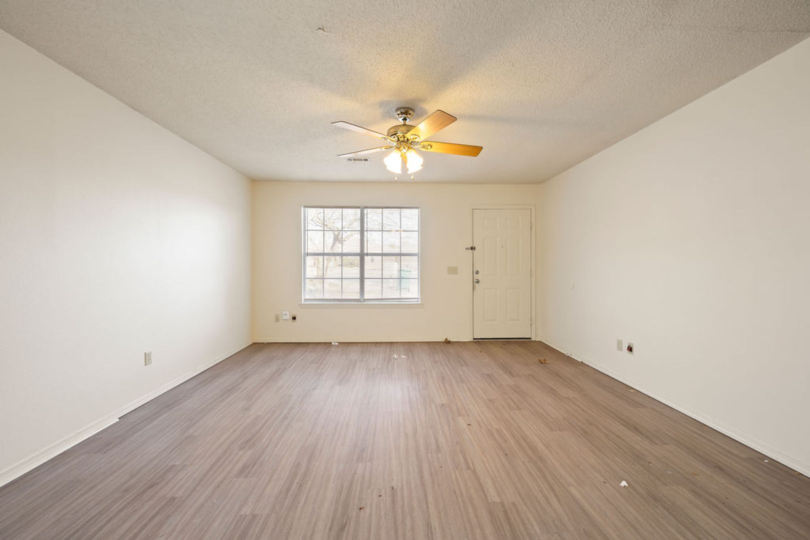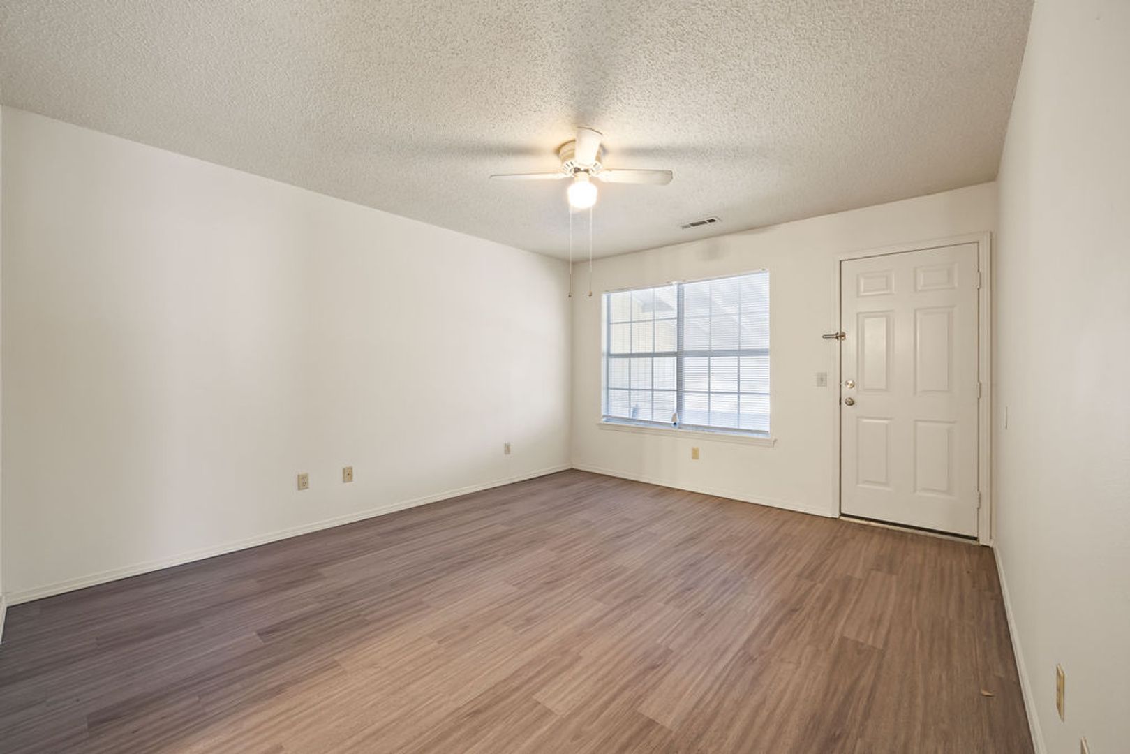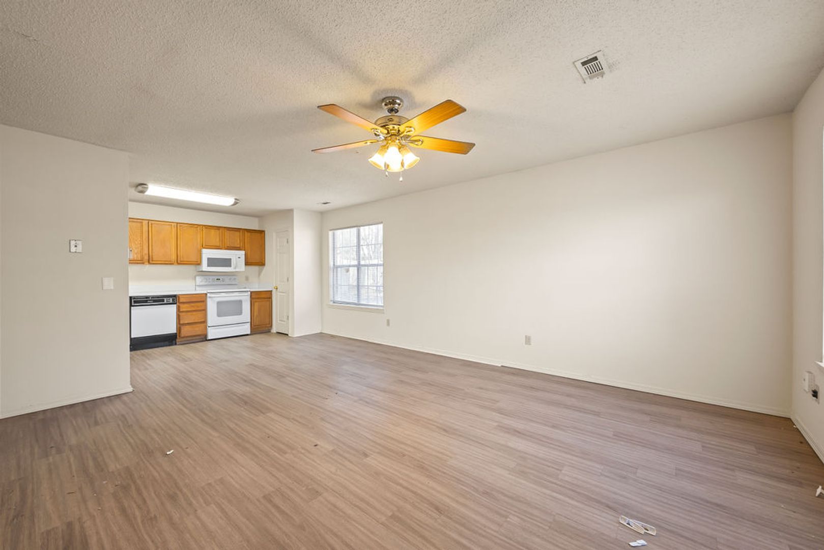 A spacious 3-bedroom, 2-bathroom, 1350 sq ft duplex featuring an open floor plan with LVP flooring, central heat/air, and ceiling fans throughout. The home includes a garage, fenced backyard, and full appliance package: refrigerator, dishwasher, range, washer, and dryer.