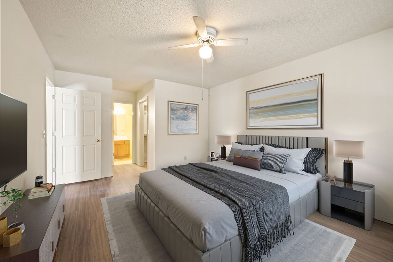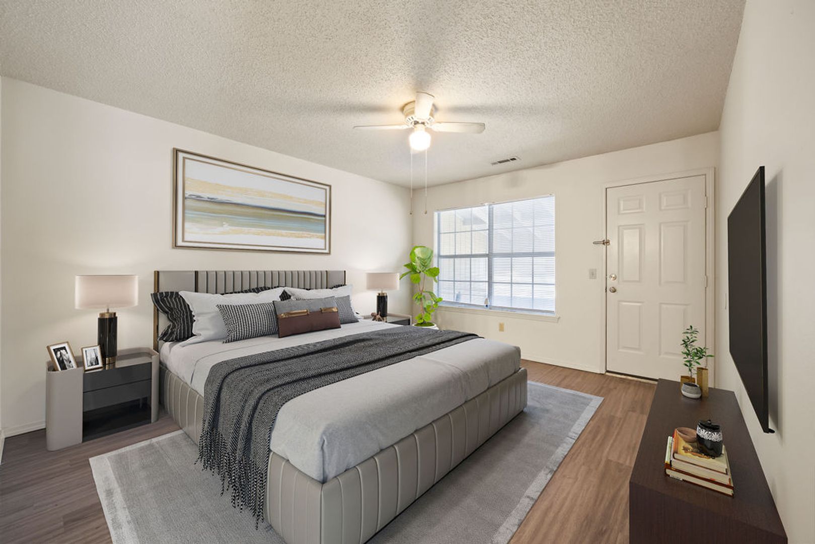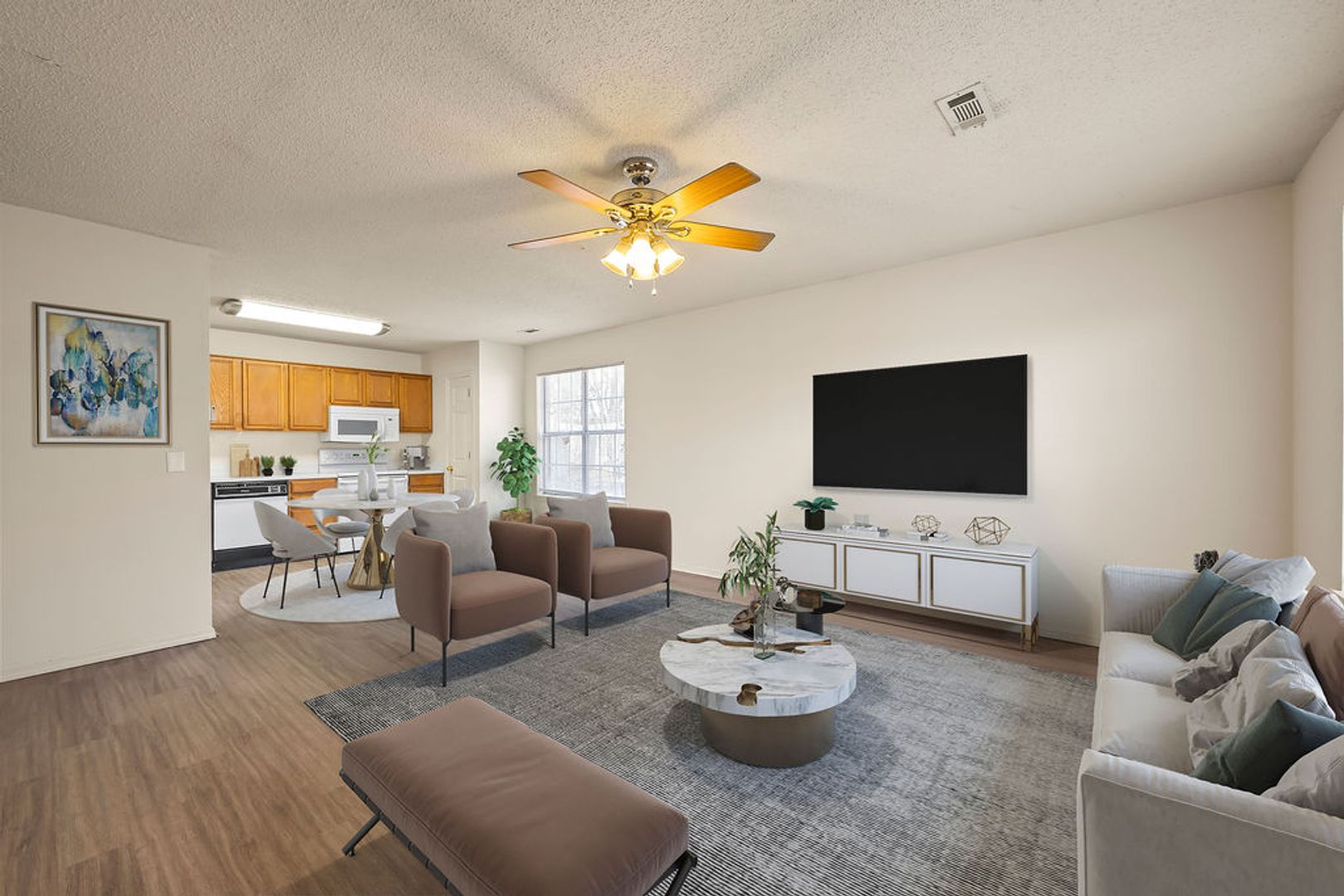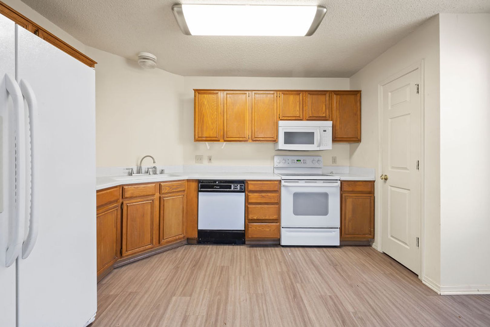 A spacious 3-bedroom, 2-bathroom, 1350 sq ft duplex featuring an open floor plan with LVP flooring, central heat/air, and ceiling fans throughout. The home includes a garage, fenced backyard, and full appliance package: refrigerator, dishwasher, range, washer, and dryer.